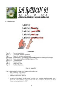 Que serait devenue la liberté de conscience et la pensée libre sans les sociétés de Libre-Pensée, sans des fédérations, sans des organes comme La Raison et à l’Idée Libre, sans le libre débat organisé dans les assemblées et les congrès, comme celui de Bourg-en-Bresse, sans les colloques, sans les initiatives comme la constitution de l’Association internationale des libres-penseurs dans le droit fil de la Fédération internationale créée à Bruxelles en 1880 ? Adhérez sans attendre ! Première conséquence : donner les moyens à la fédération de l’Essonne de développer la campagne – pour la défense de l’école laïque, – -pour la réhabilitation collective et immédiate de tous les fusillés pour l’exemple de la guerre de 1914-1918 (Monsieur le Président de la République doit se prononcer dans ce sens, sans attendre 2014), – -participer au financement de la délégation de la FNLP à la Conférence d’Asuncion au Paraguay qui se tiendra prochainement, suite au Congrès des Amériques de Mar del Plata de novembre 2012.
