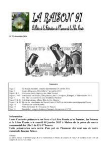La Raison 91, notre bulletin fédéral tient à participer davantage au développement de ces campagnes. Il s’en faut de plusieurs dizaines d’abonnés supplémentaires à 12 euros annuels pour que nous puissions étendre sa diffusion en gardant un budget équilibré avec la présentation et les rubriques actuelles sur 16 pages.
