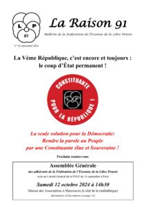 • Pour nous en France, la seule solution pour la Démocratie, c’est rendre la parole au Peuple par une Assemblée Constituante élue et souveraine